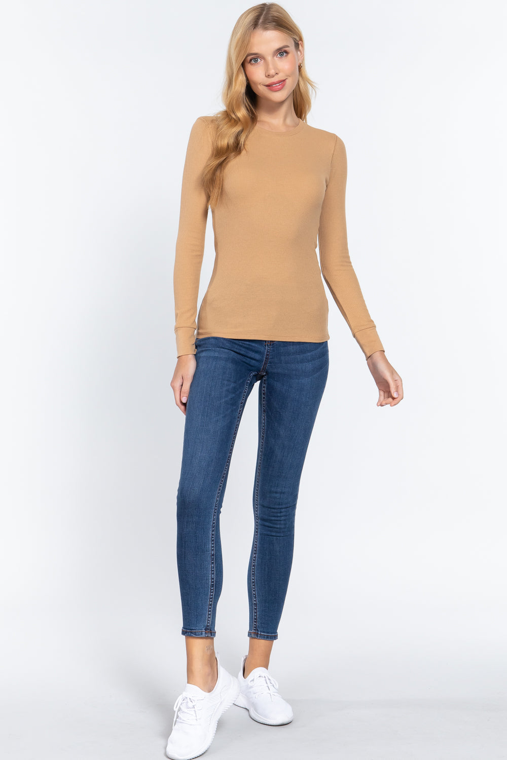 LONG SLEEVE CREW NECK THERMAL KNIT TOP