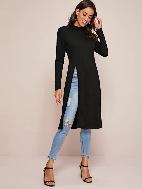 • Load image into Gallery viewer, Oya Solid Side Split Longline Tee