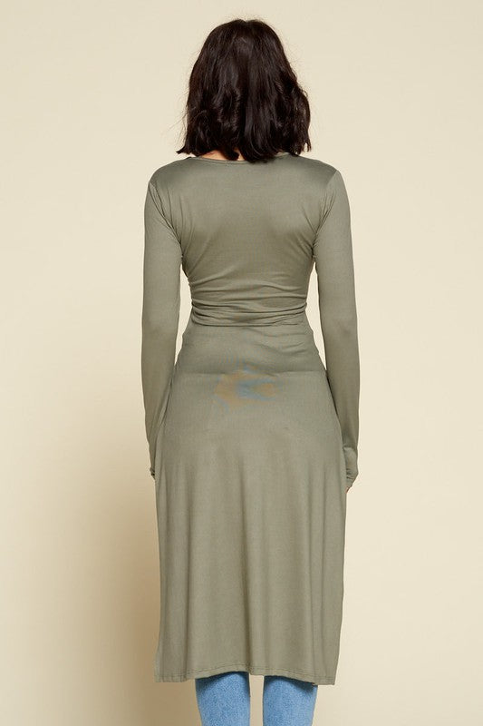 Solid color hi-low bottom hem top, v -neck, long sleeves
